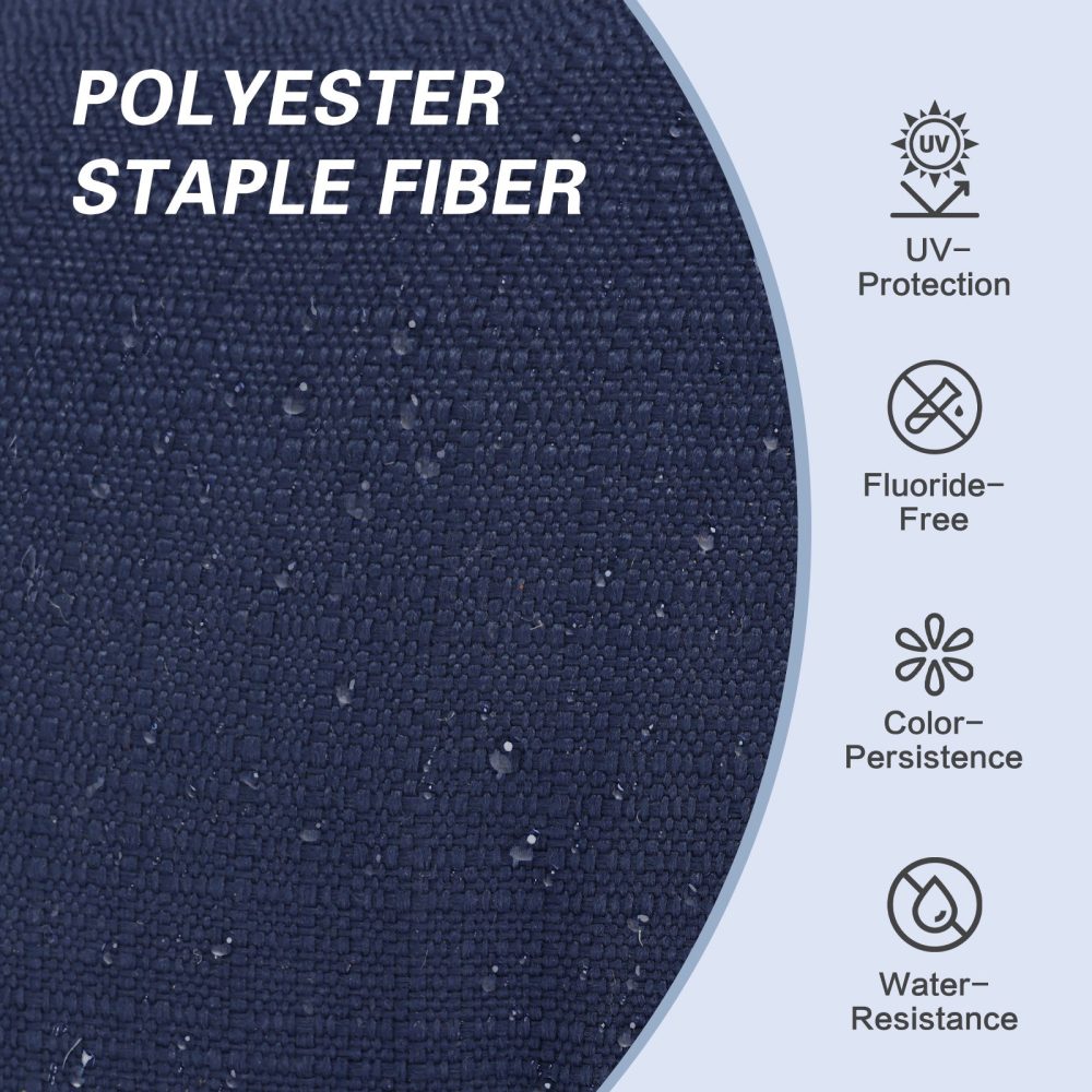 • Premium Polyester Construction: These polyester outdoor cushions showcase solution-dyed fabric technology, where colors are permanently locked into the fiber during manufacturing. This means your cushion – whether you choose a striking dark blue bench cushion or another shade – maintains its rich color even after 1000+ hours of sun exposure.