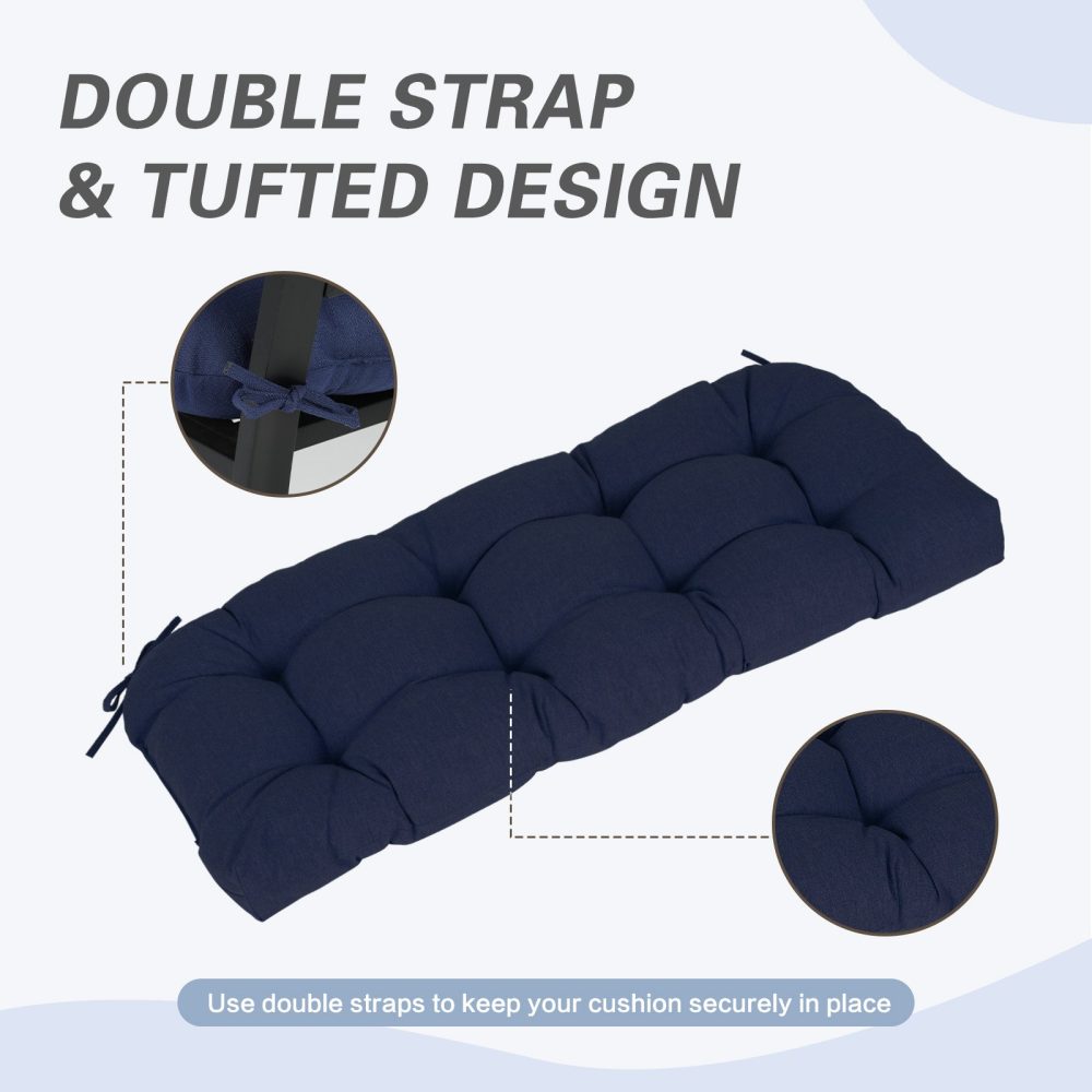 Outdoor Polyester Tufted Bench Cushion, Water & Fade Resistant, Dark Blue